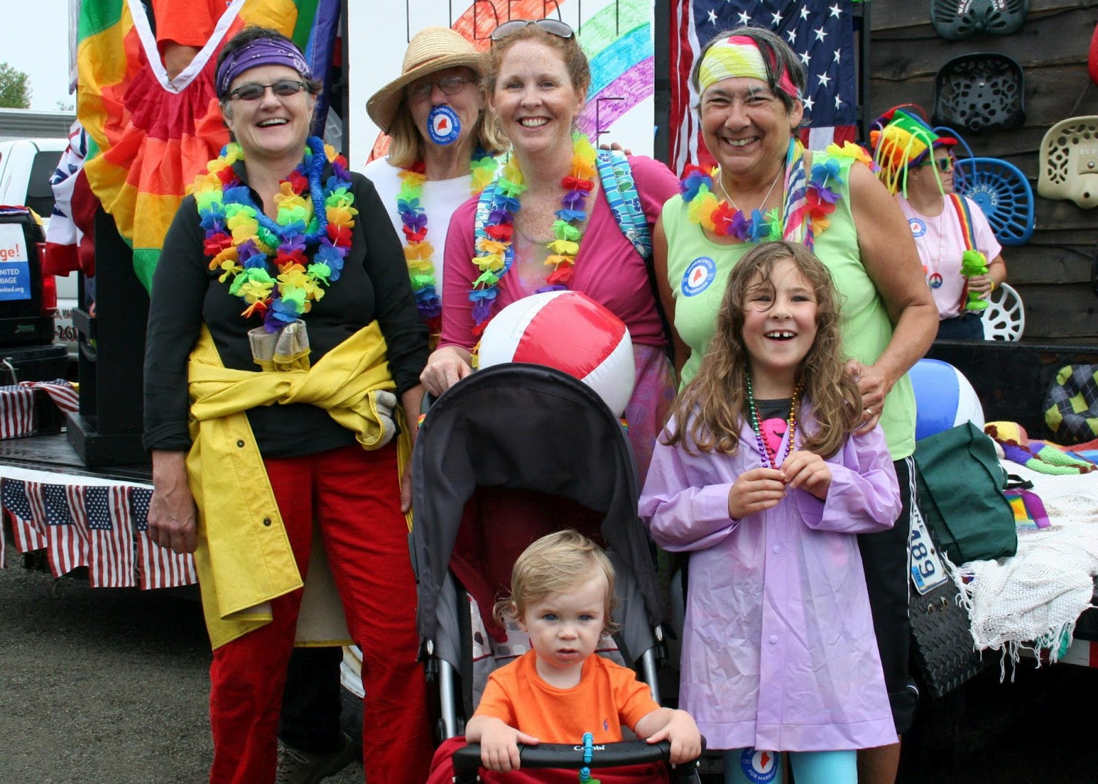 I looked at Sandi, Suzanne, & the girls, and I looked at all those family members surrounding them, there for them, supportive and loving of who they are, and I wondered what that would be like. How lucky you all are as a family to have the love that you do. That family means love and unconditional support in every way imaginable. Family means exposing yourself, educating others in what is right and wrong, and why equality is important, no matter what the response from others may be. That Family means putting in timeless hours and traveling around the State to share a message of love, strength, support and equality. That Family means building a "Pride Mobile", spending countless amounts of your own money, and spending weekends building, rebuilding, and marching for the ones you love. That Family means coming together and showing that you will be there no matter what. And that Family means that no matter what happens in November, the relationships, unconditional support and love will always be there. Personally, I can not imagine what it would be like for my very large and non-supportive family to show me and my friends this type of honest and connected love and support, and I would even settle for a small percentage of this love I saw yesterday."